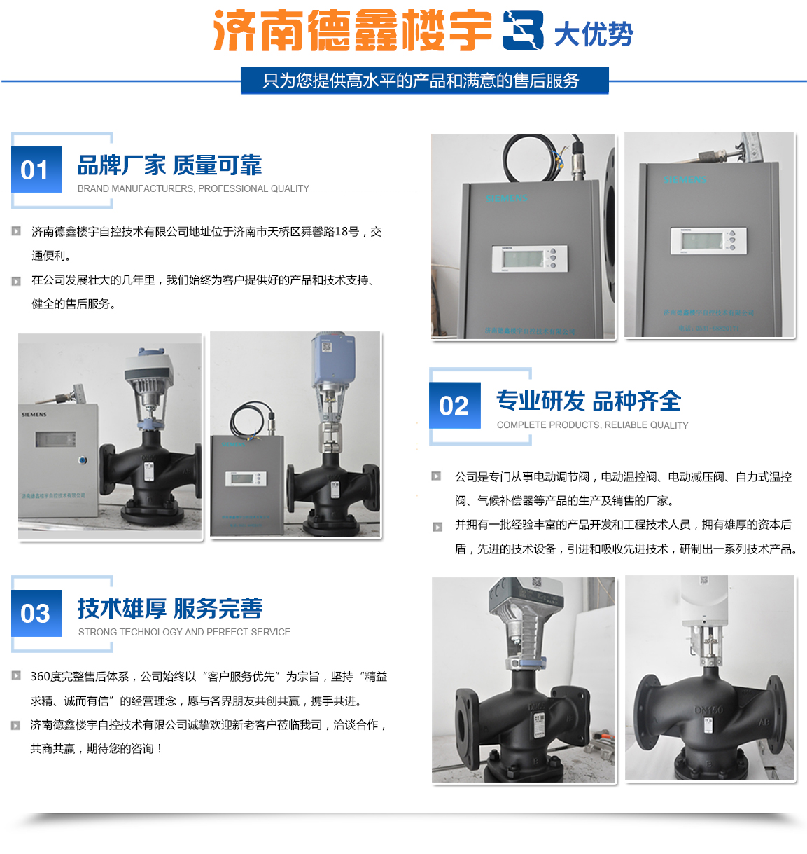 濟南德鑫樓宇自控技術(shù)有限公司是專門從事電動調(diào)節(jié)閥,電動溫控閥、電動減壓閥、自力式溫控閥、氣候補償器等產(chǎn)品的生產(chǎn)及銷售。濟南德鑫樓宇自控技術(shù)有限公司擁有一批經(jīng)驗豐富的產(chǎn)品開發(fā)和工程技術(shù)人員,擁有先進的技術(shù)設(shè)備,引進和吸收先進技術(shù),研制出一系列技術(shù)產(chǎn)品。